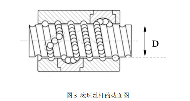 For ball screws, the contact between balls and grooves is linear. The outer diameter of the ball screw corresponds to the pitch diameter of the T-threaded screw described above (Figure 3).