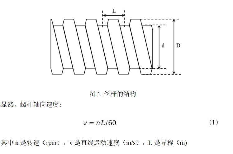 As shown in Figure 1, the lead L of a screw is the axial distance the nut travels when the screw rotates one full turn. In a single-start thread, the lead L equals the pitch.