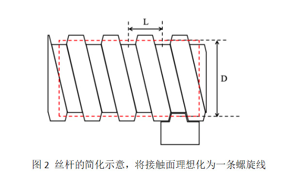 In scenarios where the screw drives the nut, force is transmitted through the threaded contact surface between the nut and the screw. For calculation convenience, we assume this contact surface is concentrated along a single line—specifically, a helical line with pitch L wrapped around a cylinder whose diameter lies between the screw’s minor (inner) and major (outer) diameters. This diameter is known as the pitch diameter (or mean diameter), as illustrated in Figure 2.