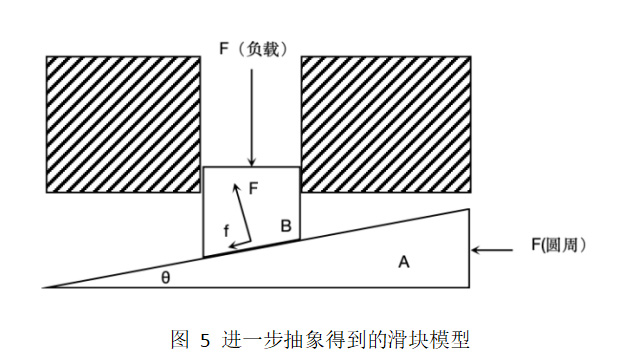 However, if λ > θ, object A remains stationary—the static friction force and normal force balance each other horizontally. This condition is known as “self-locking.” Therefore, the self-locking condition for a screw mechanism is λ > θ. From Table 1, we know that ball screws have friction coefficients below 0.01, corresponding to friction angles less than 1°, which are inevitably smaller than θ. Hence, ball screws cannot self-lock. For standard T-threaded screws, assuming μ = 0.2, the friction angle is approximately 11°. To achieve self-locking, the lead angle θ must be less than 11°.