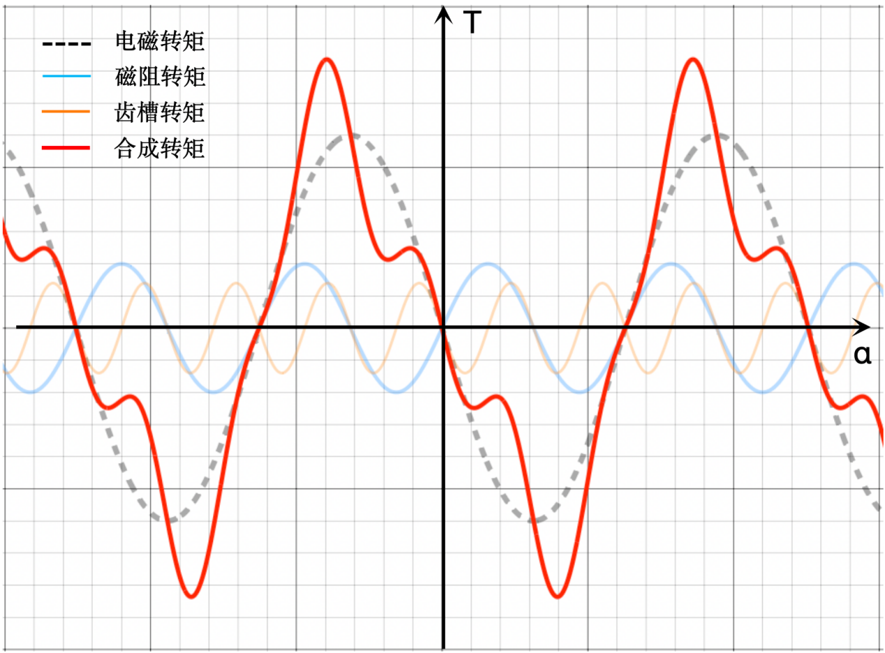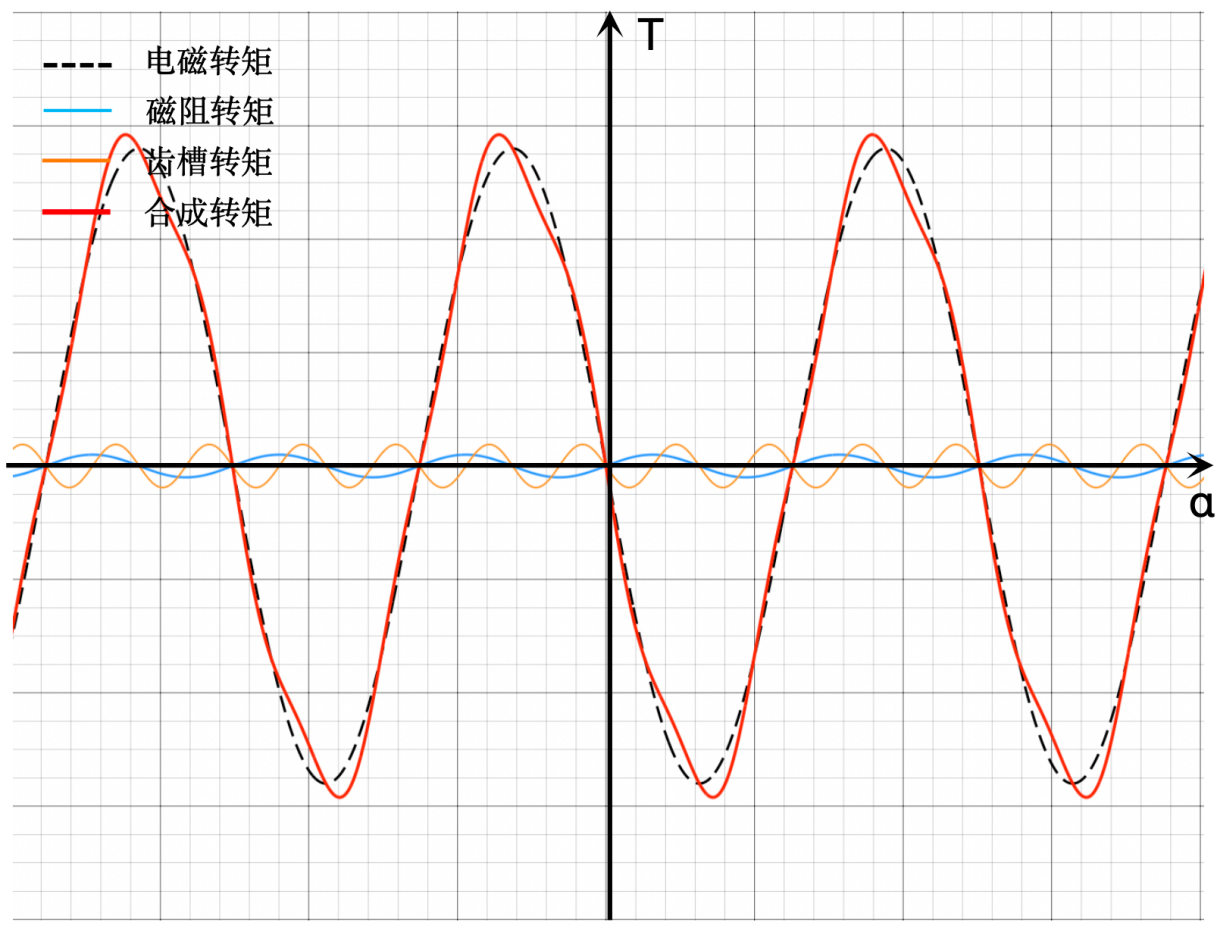 The magnitudes of electromagnetic, reluctance, and cogging torque are unknown in the above analysis, so Figure 5 is schematic. Measurements were taken using a torque meter to determine their actual magnitudes.
